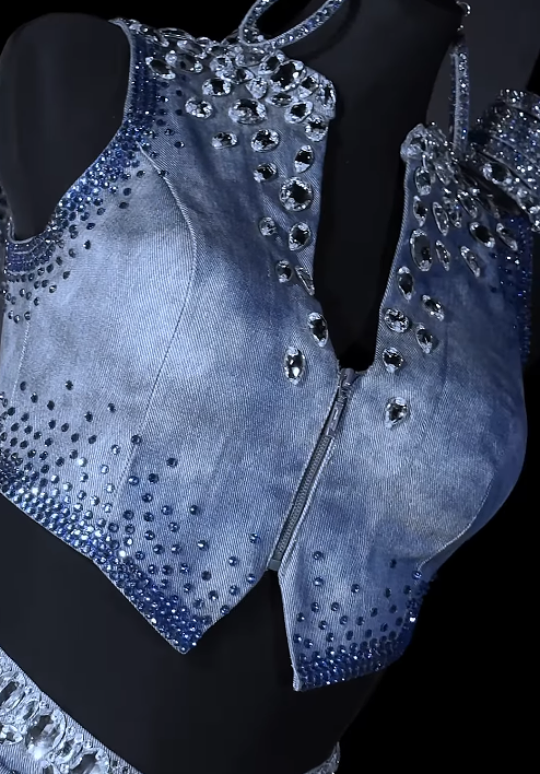 Dazzle Rhinestone Denim Skirt 2pc Set