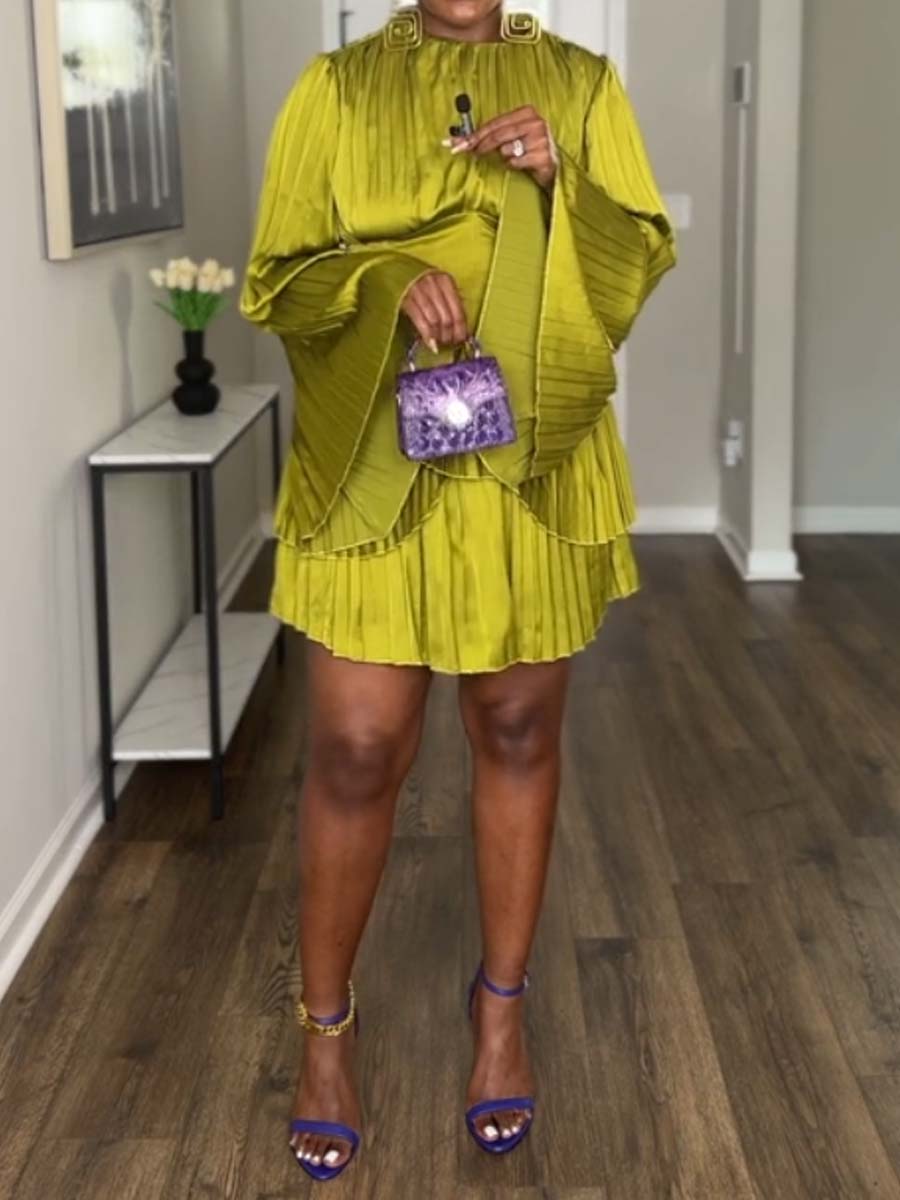Elegant Long Sleeve Pleated Mini Dress
