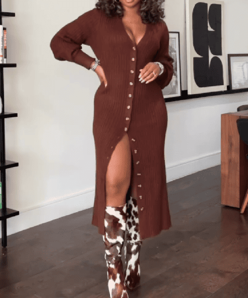 Wear with a wide belt with a jewelled buckle to accentuate the waist, textured high boots and a fringed bag for a trendy winter look.