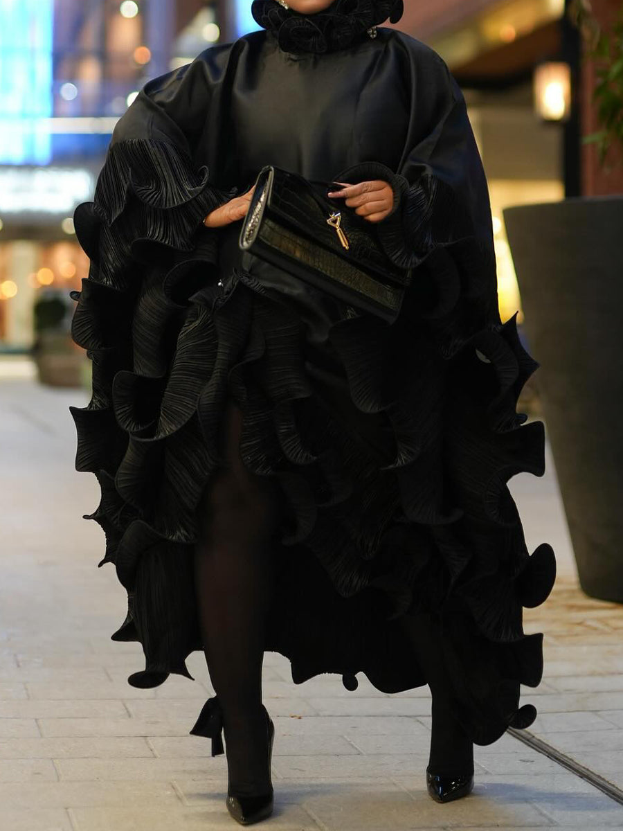Spiral-hem Pleated Frills Loose Maxi Dress