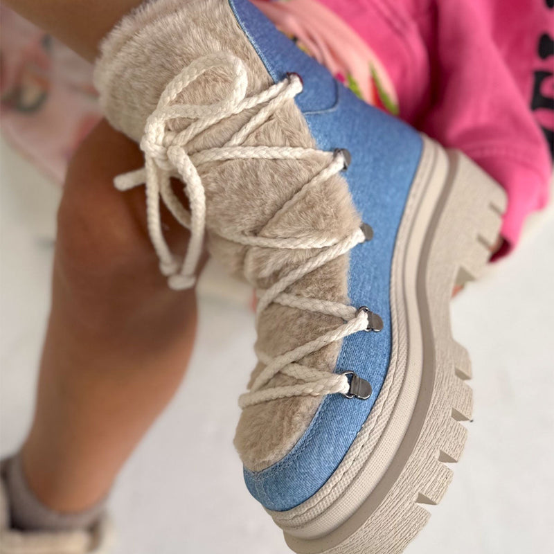 Thick-soled Furry Lace-up Boots